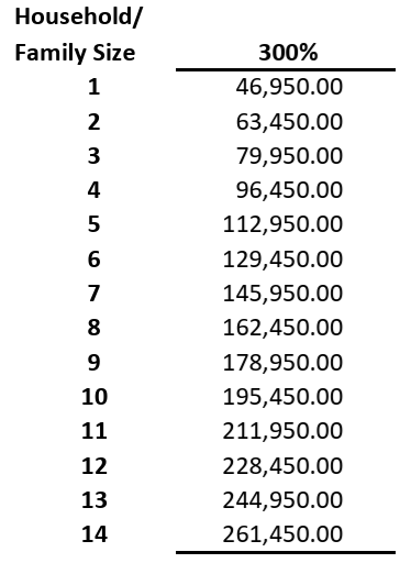 Here are the 2025 Federal Poverty Guidelines at 300%, for your reference.