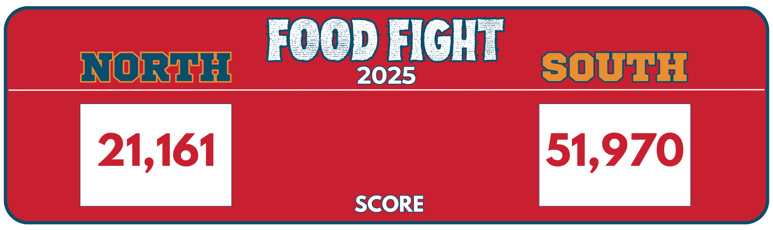 That's the tidal wave of generosity unleashed during our last Food Fight campaign, which helps keep our food pantry stocked year-round.