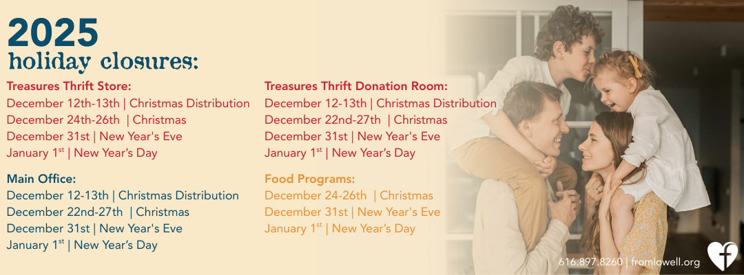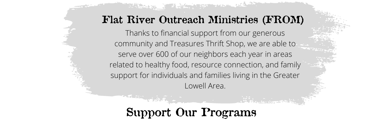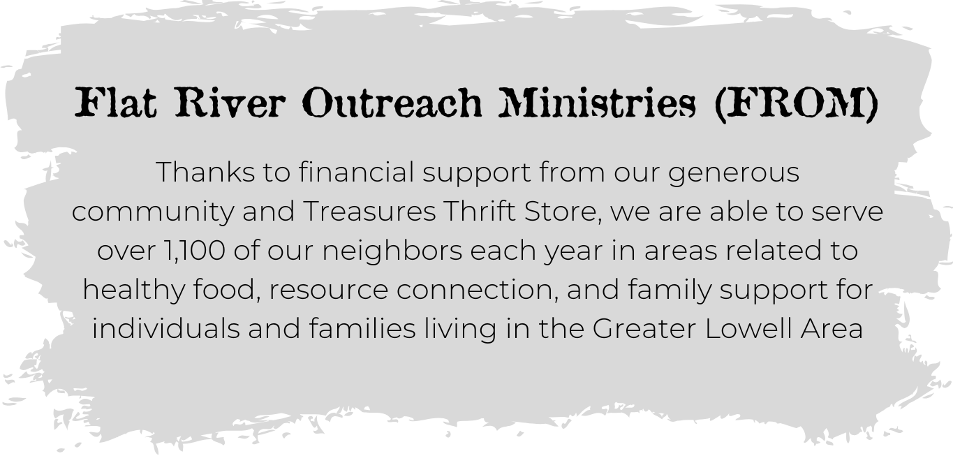 Thanks to the generous support of our community and Treasures Thrift Store, we’re able to walk alongside more than 1,100 families each year, offering healthy food, helpful resources, housing, and family support to those living in the greater Lowell area. Together, we’re building a more resilient and connected community.