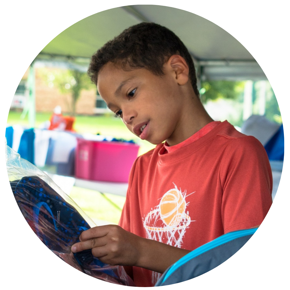 Families come with their children, select a backpack, and get supplies specific to their student's school and grade!