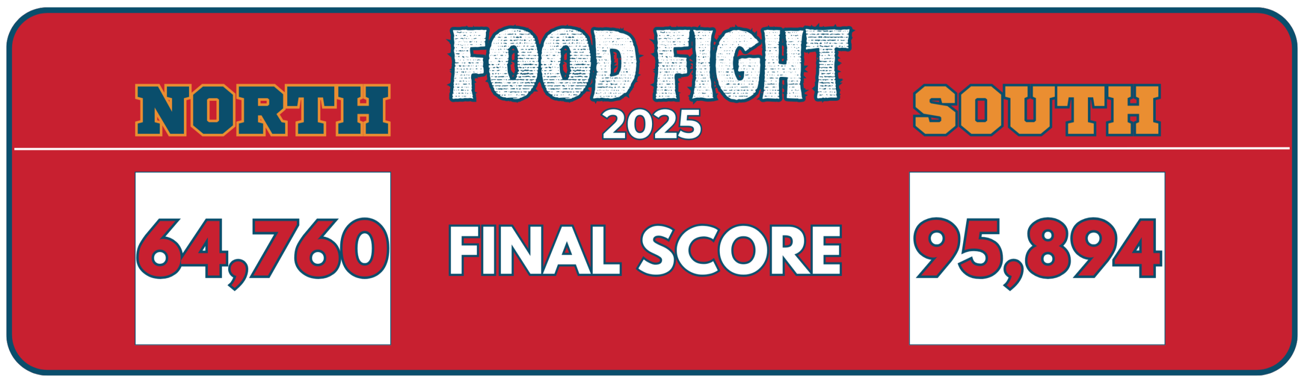 That's the tidal wave of generosity unleashed during our last Food Fight campaign, which helps keep our food pantry stocked year-round.